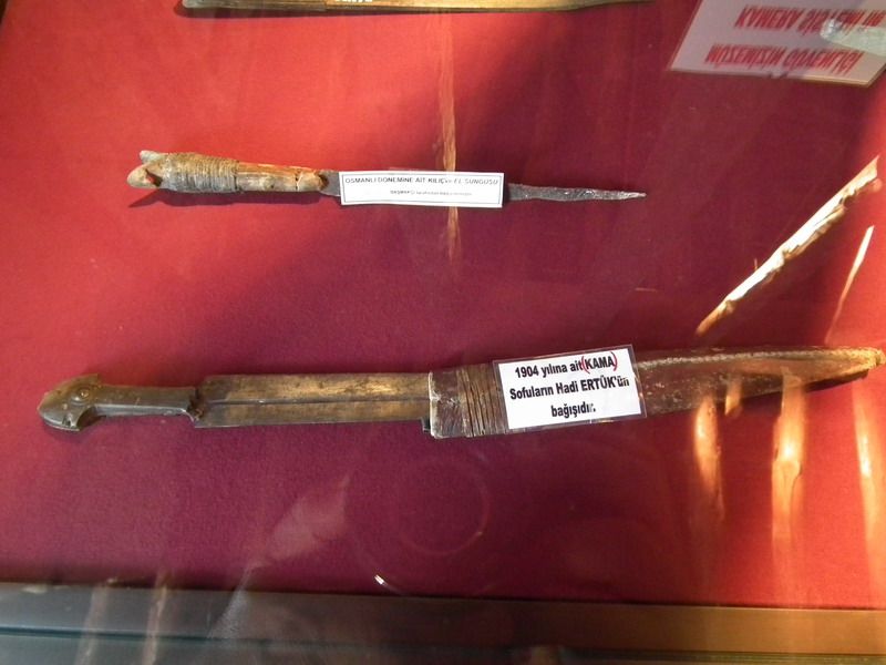 Tatilin bir diliminde Ankara- Beypazarını da ziyaret ettik. Küçük bir müzesi var, kendi içinde özgün eserlere sahip. Bir çoğu yöre insanlarının bağışları sonucu birikmiş. Müzenin kendi binası da bağışlanmış bir konak. Müzede sergilenen kılıç, kamaların fotoğraflarını çekmiştim, paylaşayım istedim.