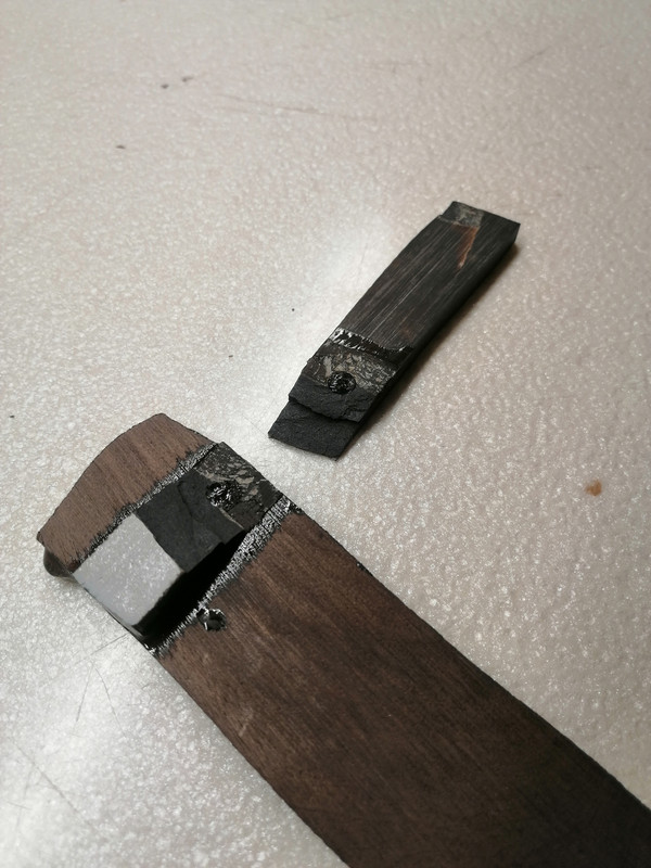Geçenlerde Sefa Hoca'nın "kompozit laminantın epoksi ile yapışmasından şüpheliyim" demesi üzerine ufak bir test yaptım. Kompozit laminant suya dayanıklı bir malzeme olduğu için suyla/nemle içli dışlı olacak bıçaklarda önerilen bir malzeme ama her iki yüzeyinde de kaplama var. Aynen suntalamda olduğu gibi. Fakat bu kaplama epoksi ile kesinlikle tutunmuyor. Kaplamayı zımpara ile kaldırmak lazım. Kaplamayı kaldırmak yeterli mi peki?