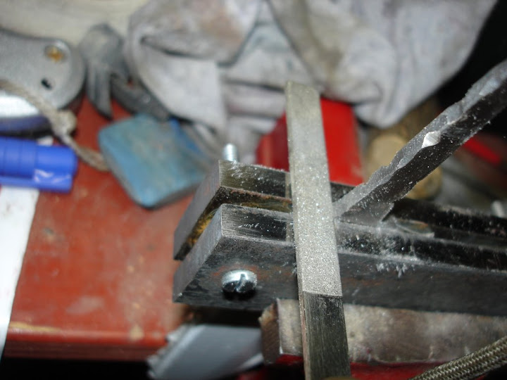 Bu iş için ihtiyacımız olan tam sertleştirilmiş, hatta tercihan karbür kaplı düz eğe yardımcısı. Bendeki 67 HRC'de D2 parçalar. Ancak elmas eğelerle çalıştığımdan yardımcıyı arada bir zımparada düzlemem icap edebiliyor...