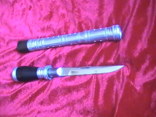 tamamı el yapımı gibi geldi bana dış alüminyum kısmı sanki tornada işlenmiş içindeki bıçak dövme bıçağa benziyor. sanki eski kasa Mercedesler için yapılmış zekice bir aksesuar.