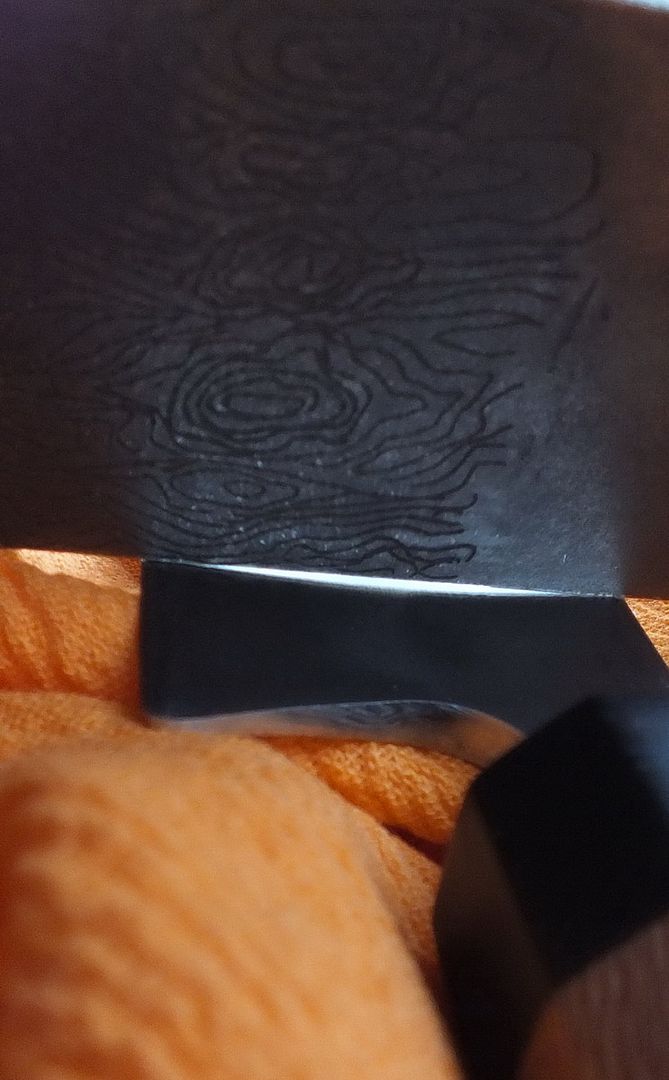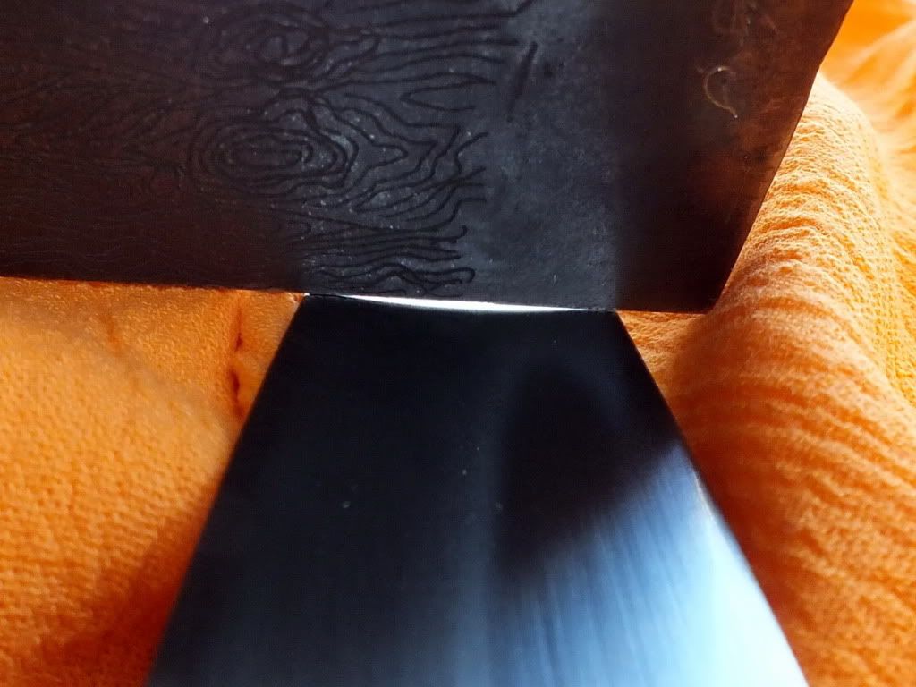 Soytürk, Tanere de dediğim gibi baktım orada bir şeyler var, asit zımpara döngüsüne soktum bir kaç kez ortaya bu çıktı. Su verme işleminde tam dik daldırmıyorum haklısın, yaklaşık 30 derecelik bir açıyla daldırıyorum desem daha doğru olur, yani önce burun giriyor yine. Ağzını çok incelttiğim bıçakların neredeyse hepsine bu şekilde su veriyorum, şimdiye kadar gördüm ki bu şekilde çarpılmalar daha az oluyor.