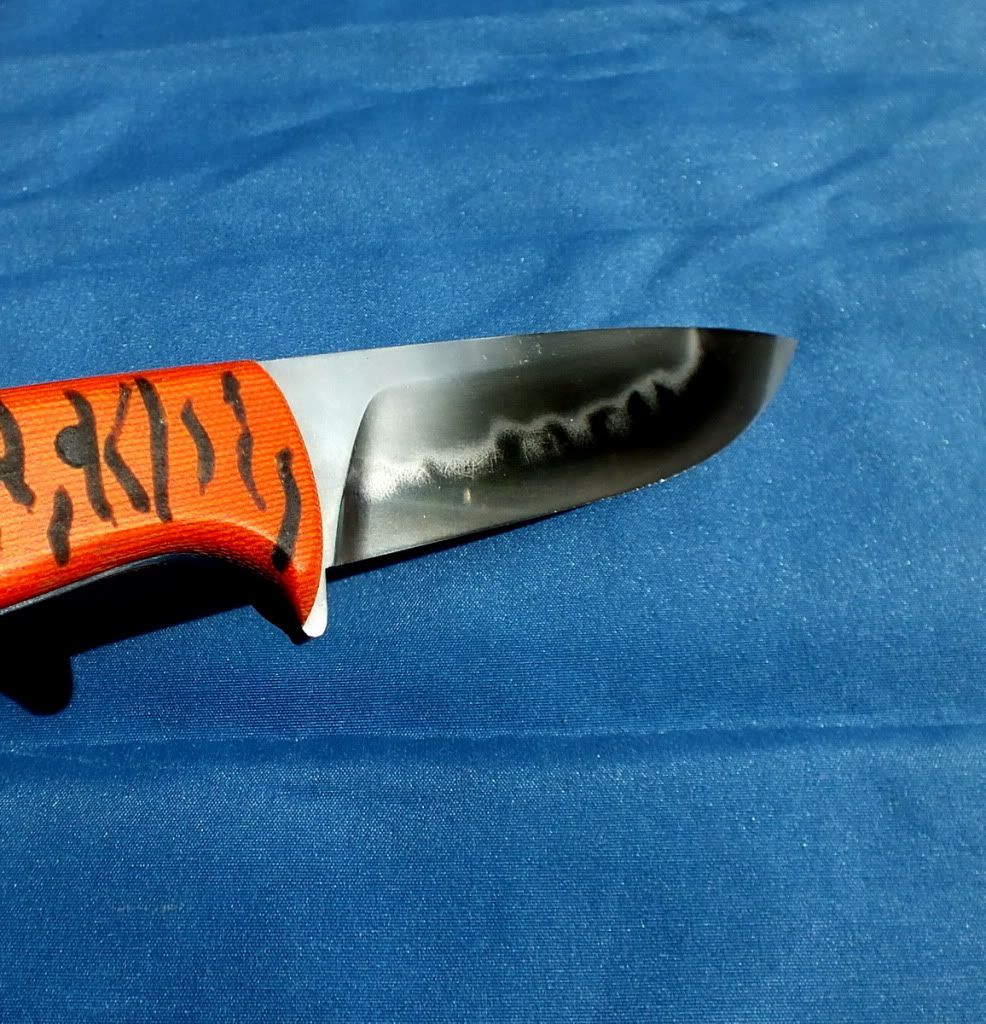Eline sağlık ustam.Bıçağı sapsız olarak görmüştüm, Taner ustanın mükemmel hamonuna çok güzel bir son vuruş yapmışsın.Sapı görünce birden aklıma Ford Hallam'ın kaplan figürü yaptığı gravür çalışması geldi