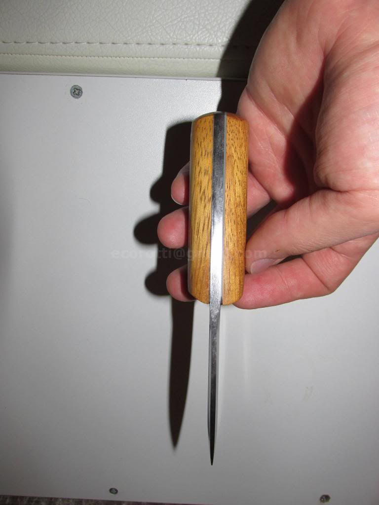 Bu bıçaktan değişik ağız açılarına sahip olarak 3 tane yaptım. Bunu DTE etkinliği için yapmaya çalıştım. Birisi geçtiğimiz gün bir forum üyesi tarafından kapıldı(yakında meydana çıkar). Bir tanesi bana kalacak(umarım).