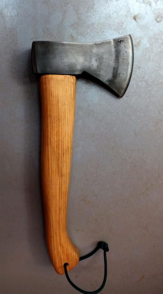 Yazın uzunca bir zamanı yaylada geçirdim. Temizlik için malzemeleri elden geçirirken 1984 yılında yaptığım balta elime geçti. Üniversitede atelye çalışması sırasında yapmıştım.Yüzey epeyce okside olmuş durumdaydı, yüzeyi temizledim ve menevişledim ama menevişi abartıp ağzı fazla yumuşatmışım  ::) ( ocağın üzerinde unuttum daha doğru) Çeliğin ne olduğunu da hatırlamıyordum doğrusu, 850 derece civarında yeniden su verdim, iyi sertleşti. Elde var olan kurumuş çam ağacından bir sap yapıp taktım. Belki model olarak ilginizi çeker diye paylaşayım dedim. Sap dahil boy 380mm, baltanın ağzı 80 mm. Sapa kama çaktım ama göreceğiniz gibi özenli olmadı, doğrusu bende önemsemedim, doğrudan hizmete soktum çünkü.